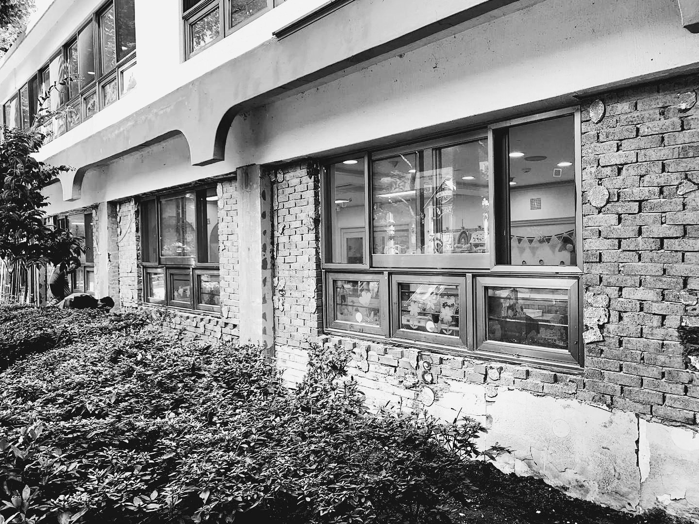 드라이비트의 외장, 30년 가까이 된 오래된 단열재와 창문으로는 아이들의 보육환경을 좋게 할 수 없다.