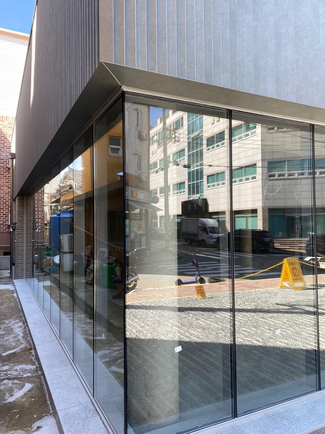 정면에서의 이미지를 외부 바닥의 패턴을 통해 확장하고 공간의 연속성을 가질 수 있게 한다.